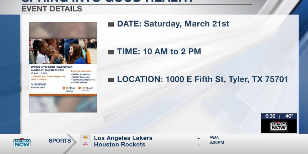 TYLER, Texas (KLTV) - The University of Texas at Tyler (UT Tyler) is joining forces with UT Health East Texas to present the annual ‘Spring into Good Health’ community event. This initiative aims to enhance health awareness and literacy across East Texas, providing valuable resources and information to attendees.
