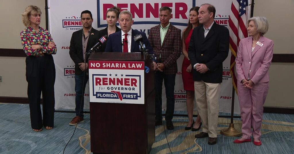 During the press conference, Renner stood next to a sign that read, "No Sharia Law," while emphasizing that Florida should block funding for any schools promoting Sharia law and should scrutinize Halal markets for health violations. Additionally, he suggested that the federal government should prevent Muslim immigration altogether. These proposals have incited outrage from various civil rights groups.