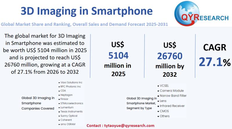 The landscape of smartphone technology is rapidly evolving, particularly in the realm of 3D imaging. According to a recent report by global market research publisher QYResearch, the global market for 3D imaging in smartphones is set to experience tremendous growth over the next decade. The market was valued at approximately US$ 5.1 billion in 2025 and is projected to reach around US$ 26.8 billion by 2031, reflecting a compound annual growth rate (CAGR) of 27.1% from 2026 to 2032.