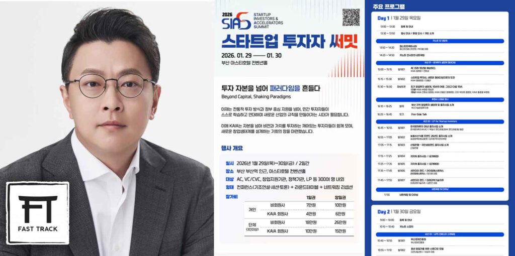 The main discussions will kick off with a keynote from Jiwoong Park, CEO of Fast Track Asia. He will provide insights into the changing dynamics of the global and domestic startup investment environment, emphasizing the strategic role of early investors in promoting ecosystem sustainability. The summit will also feature a variety of sessions addressing key themes relevant to the future of investment in Korea.