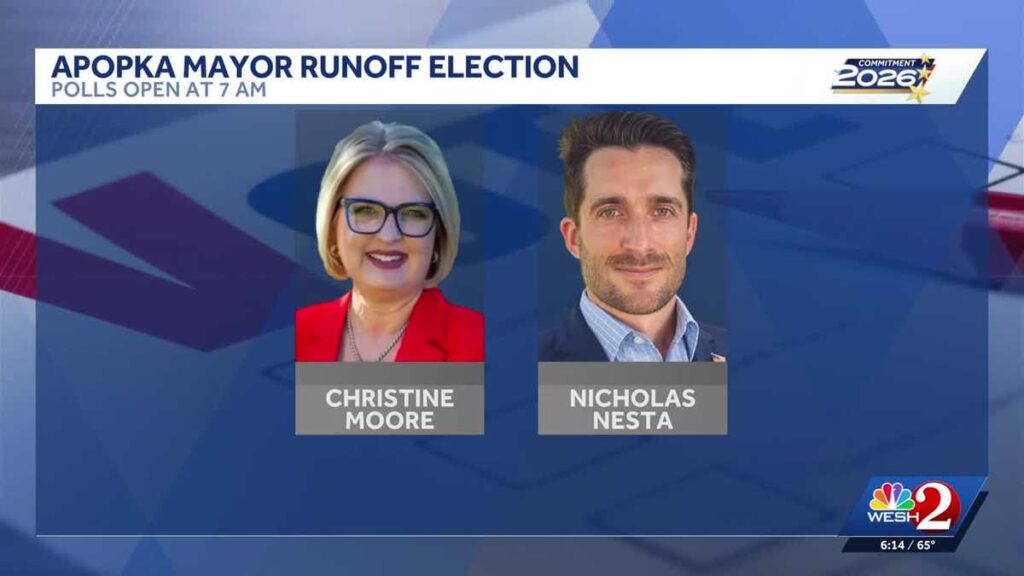 Polls have opened in Apopka, Florida, as voters head to the polls for an important mayoral runoff election set for today. With the stakes high, the residents will choose between candidates Christine Moore and Nick Nesta to determine who will lead their city moving forward.
