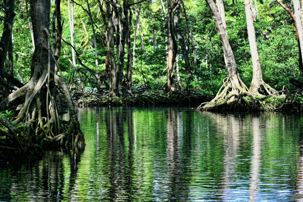 - Mangrove forests are saltwater trees that thrive in tropical and subtropical coastal areas, such as Florida, the Gulf of Mexico, and Southeast Asia. Their tangled root systems play a significant role in trapping sediment and providing safe nursery habitats for fish, birds, and marine mammals. Research suggests that mangroves protect approximately 15 million people from flooding annually and prevent over $65 billion in property damage each year through their natural coastal buffering capabilities.