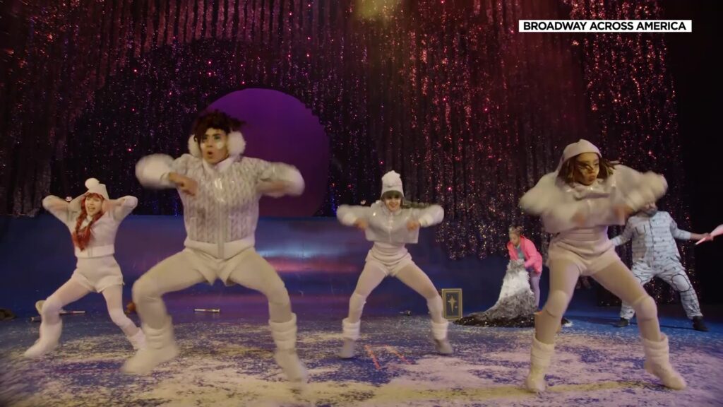 The visual aspect of the show is equally compelling, thanks in large part to the extraordinary costumes. Backstage, Marianne Theriault, head of wardrobe, described the overall aesthetic as “modern day-to-day wear with a little more, a little extra, whimsical.” For instance, she transformed a tracksuit with gold embellishments and named it after iconic reindeer: Dancer, Dasher, and Vixen. Even the shoes are adorned with glitter, enhancing the festive atmosphere.