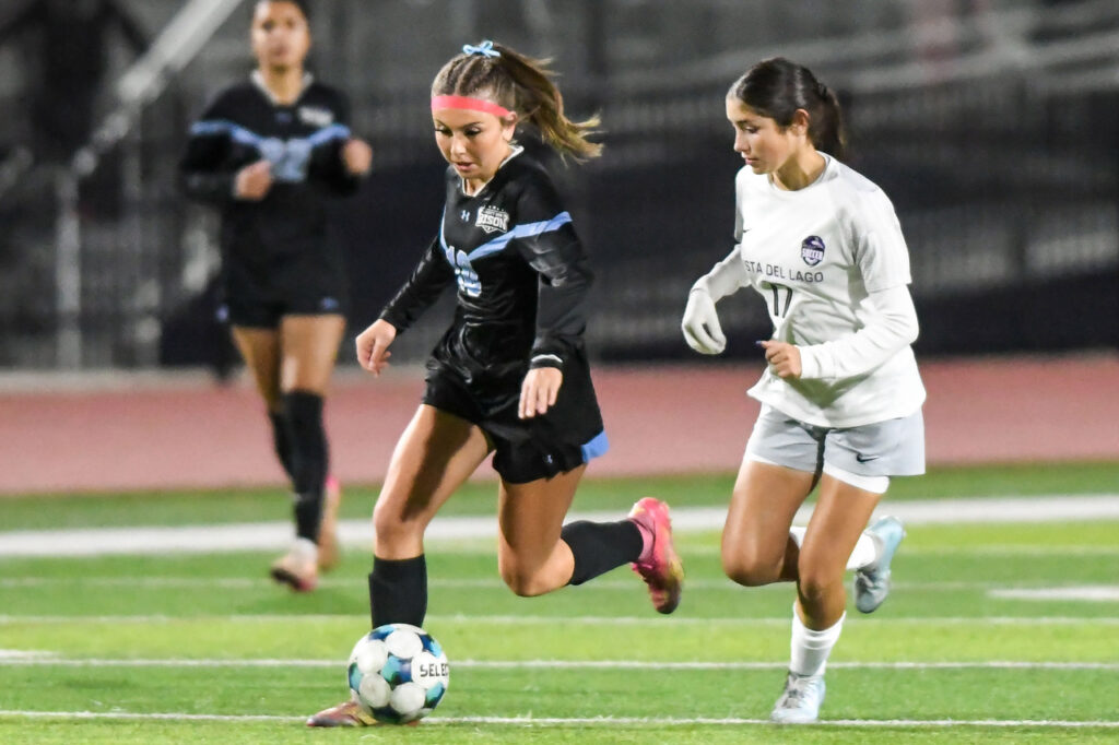 The game featured standout performances from several players beyond the goal scorers. Kayla Petty displayed impressive footwork as she maneuvered between defenders, while Lillian Alagao prepared to take crucial shots that kept the pressure on Vista del Lago. Ryann Hill also made notable contributions, skillfully advancing the ball along the sidelines, and Carolyn La Rochelle showed her talent by delivering effective crosses throughout the match.