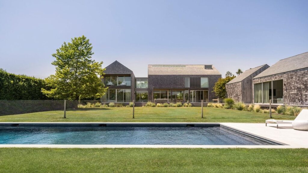Completed in 2020 by Bocchino Theisen Builders, this modern residence spans 5,932 square feet and features four bedrooms and 6½ bathrooms. The home is situated within the Bridgehampton Union Free School District and comes with an annual tax bill of $18,905.